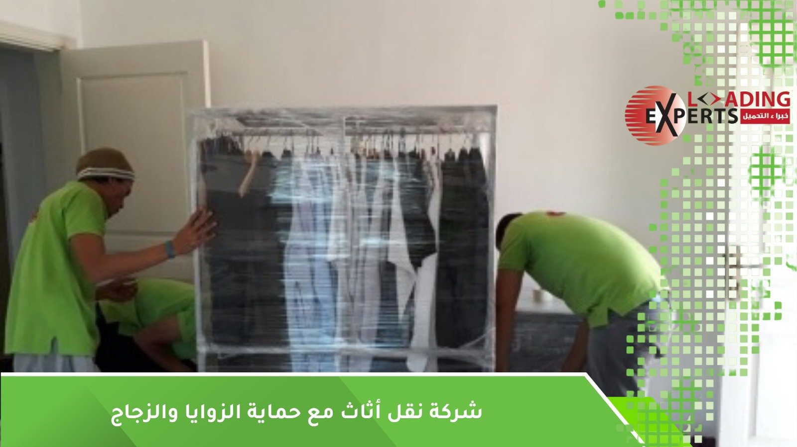خدمات شركة خبراء التحميل في نقل الأثاث مع حماية الزوايا والزجاج